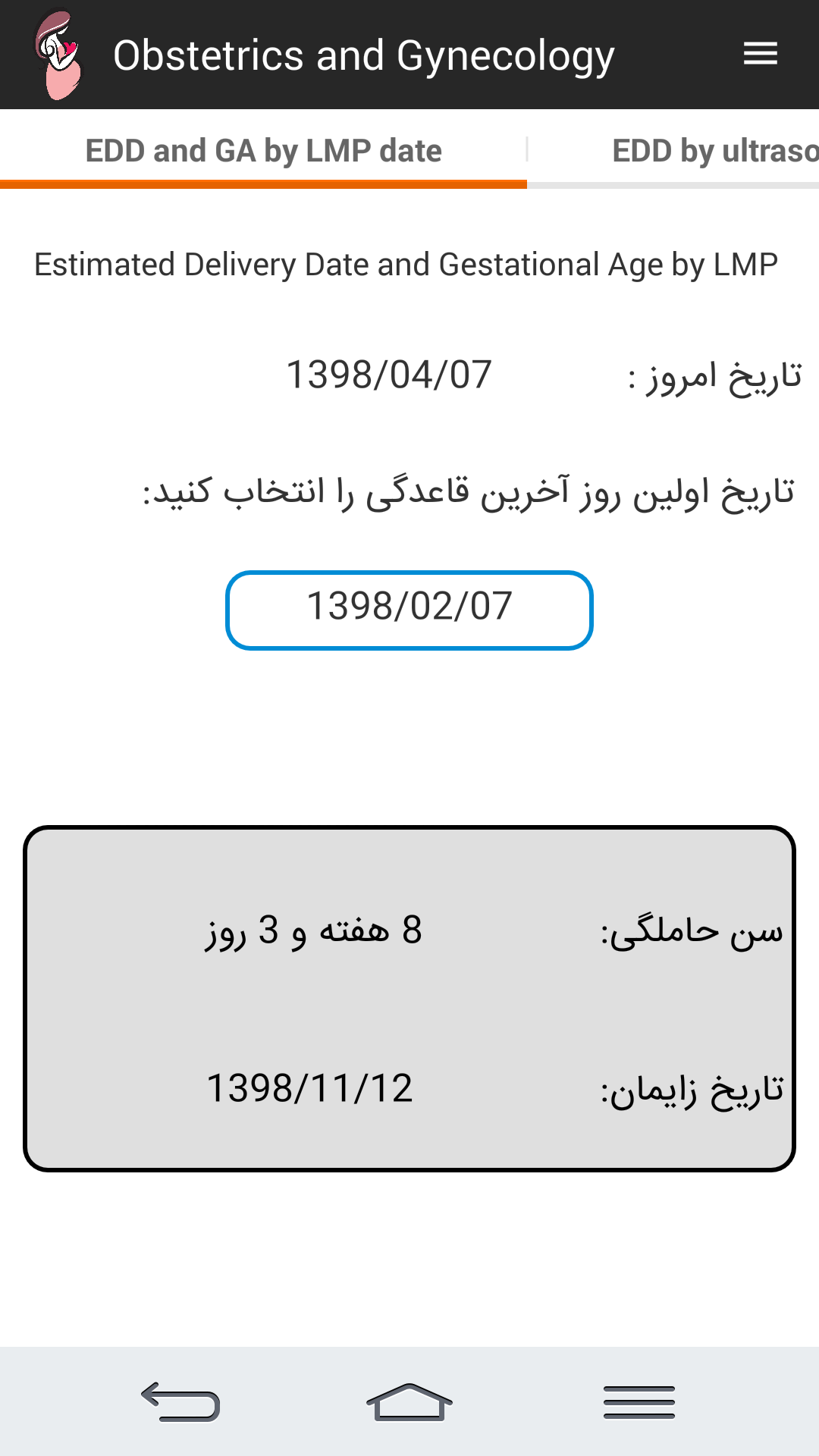 امکان محاسبه سن حاملگی و زمان زایمان براساس آخرین قاعدگی و سونوگرافی با تاریخ شمسی